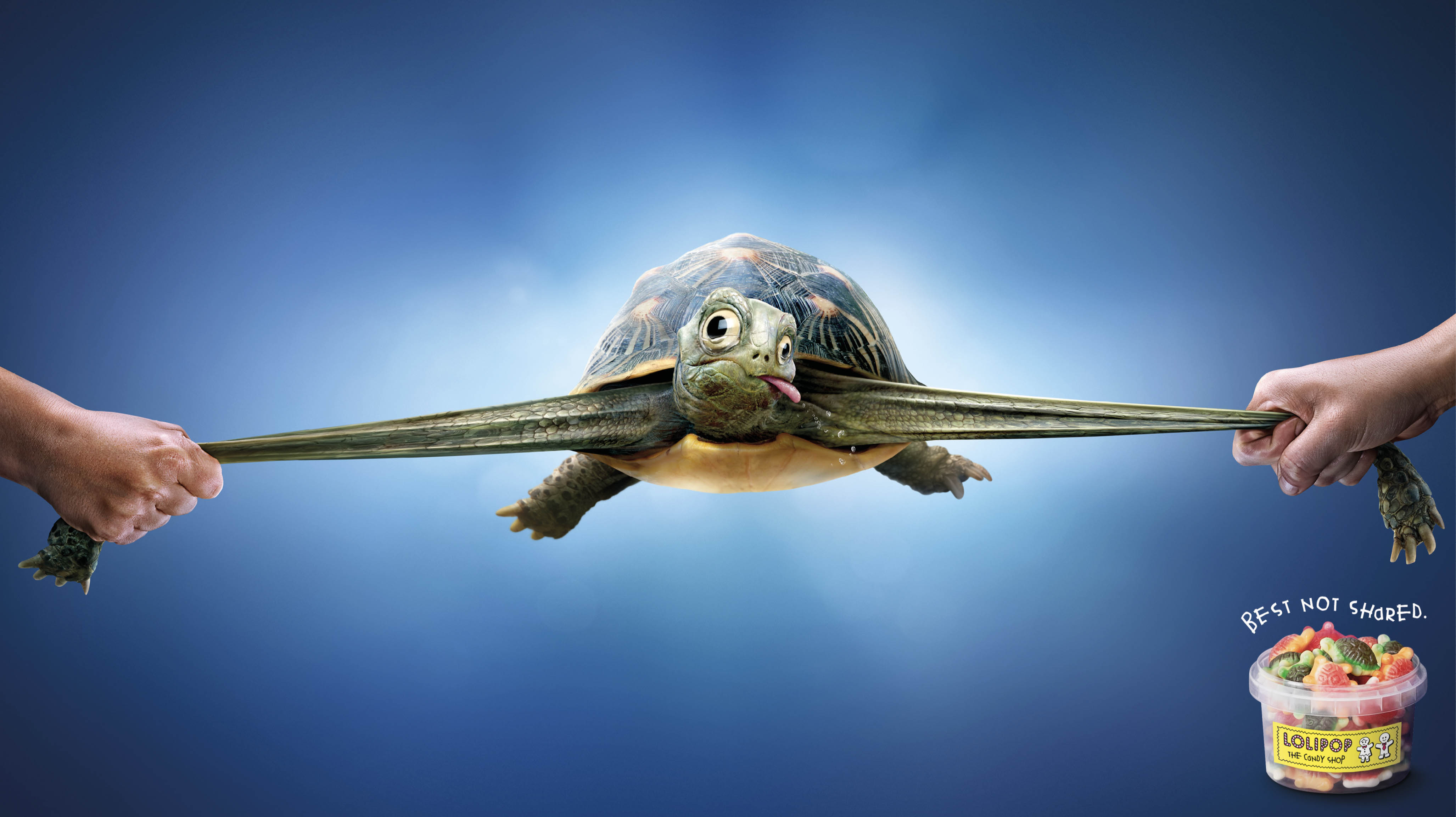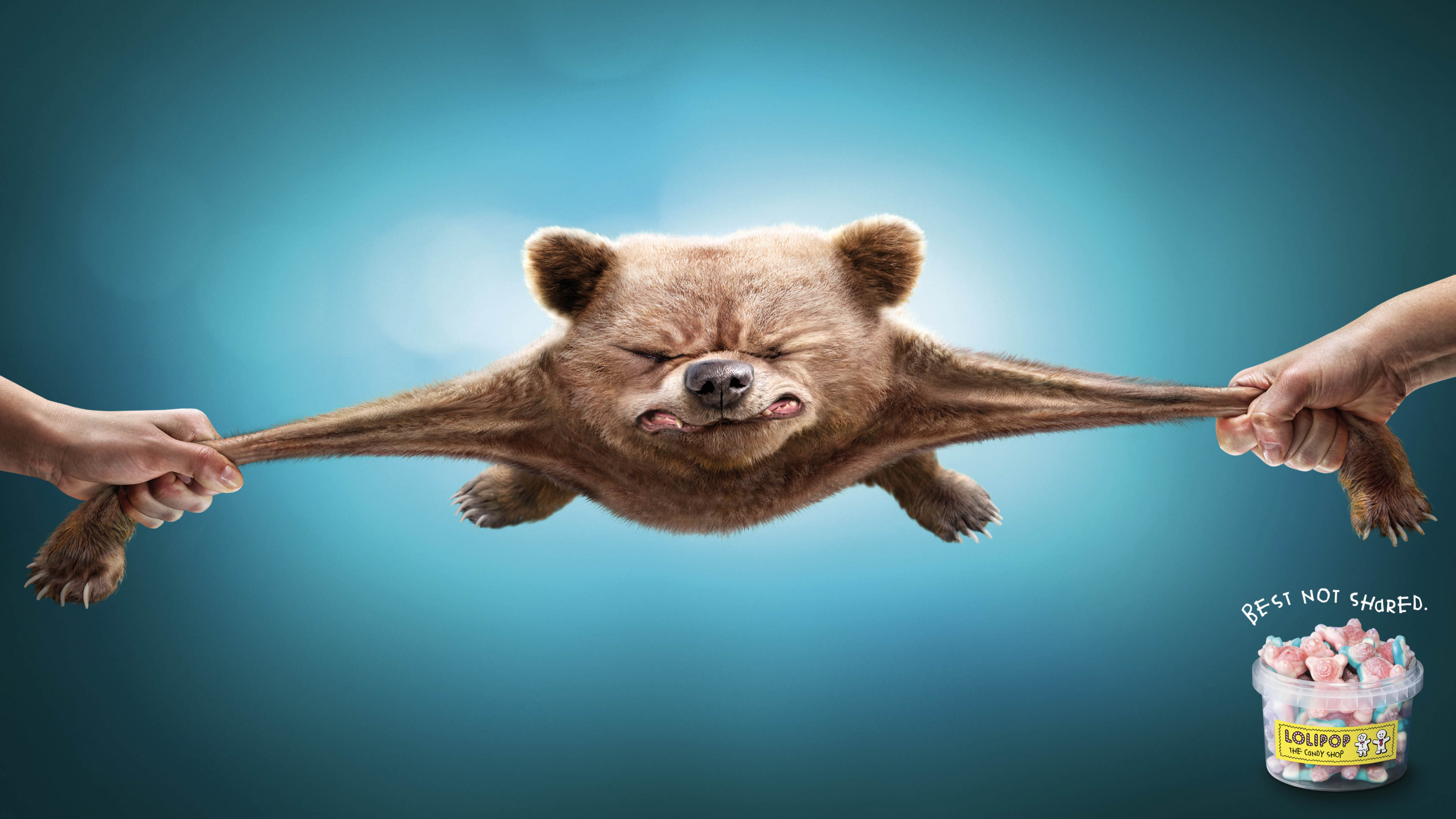 Created for submission to the Cannes Lions, this visually playful and technically ambitious campaign for Lolipop Gummies brought the brand’s candy shapes to life in a wildly imaginative way. Each of the three images featured two hands in a tug-of-war over a gummy—stretched mid-air—revealing hybrid animal creatures that blended cartoon charm with photo-realistic textures. The result was a striking visual metaphor for the gummy’s irresistible appeal, crafted with a perfect balance of whimsy and hyper-real detail.