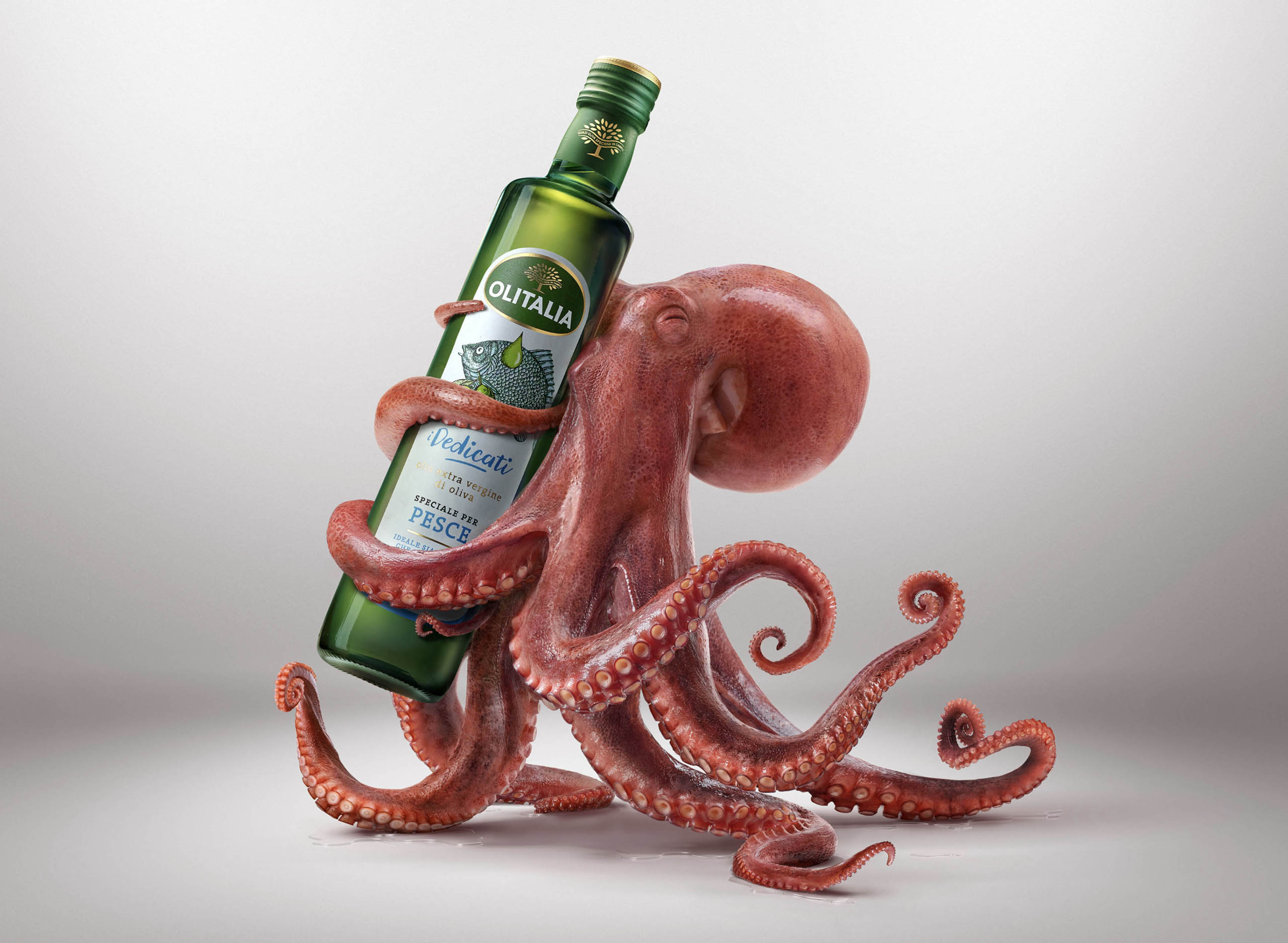 Commissioned by Olitalia and Leo Burnett, this playful and visually rich campaign set out to romanticize the relationship between high-quality olive oil and food. The concept revolved around the idea of various ingredients like a tender octopus and a vibrant broccoli falling in love with the iconic Olitalia bottle. Each visual was designed as a surreal, emotionally expressive scene that elevated the act of cooking into an experience of pleasure and connection.
